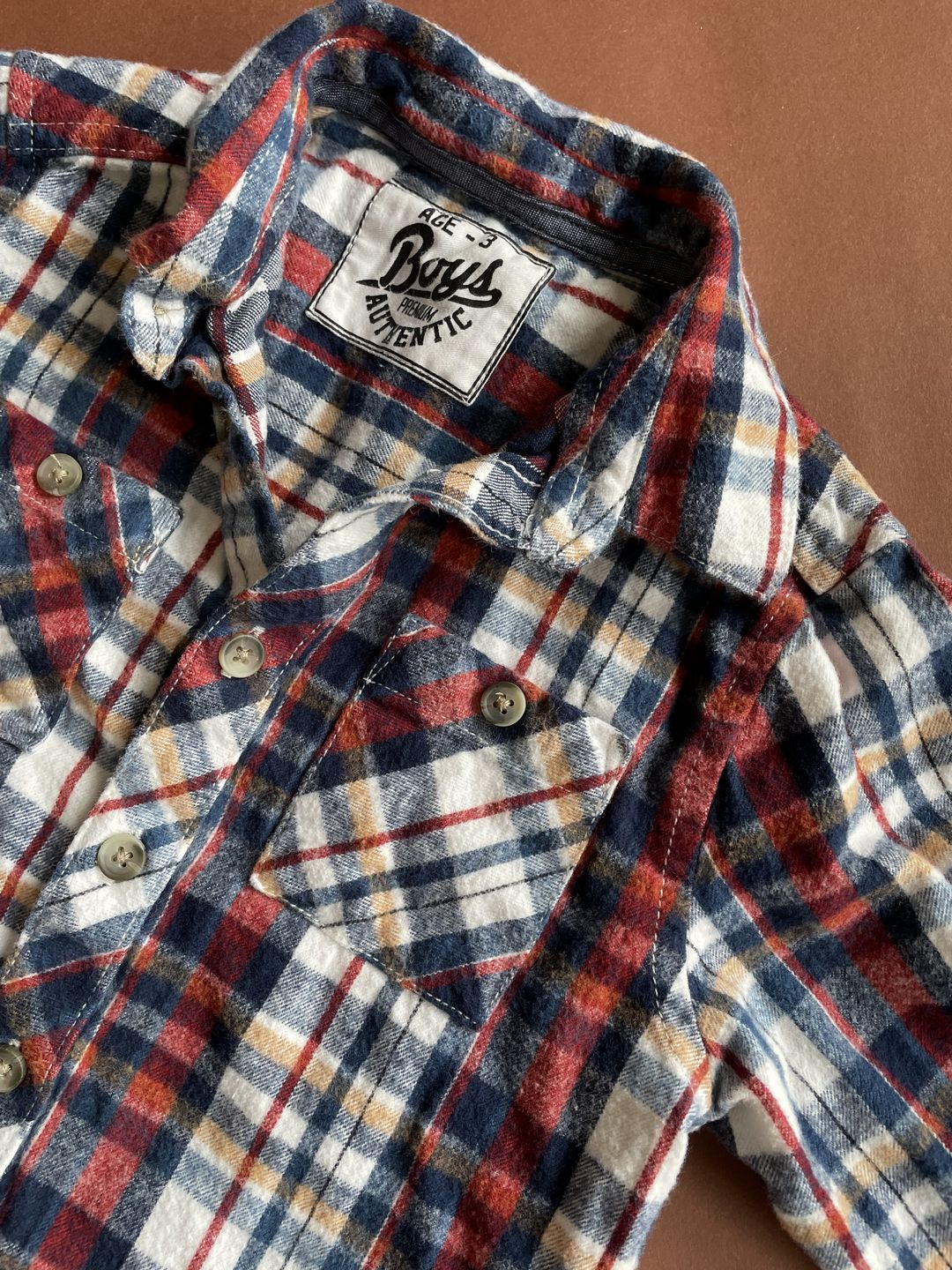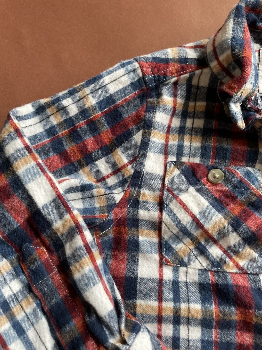 Flanelowa koszula w rozmiarze 98 firmy next, zapinana na guziki. Piękny wzór czerwono- granatową kratkę, klasyczna. Posiada dwie kieszenie. Materiał bardzo miękki i przyjemny,
