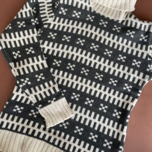 Wełniany sweter 100% wełna Mads norgaard, czarno biały geometryczny wzór